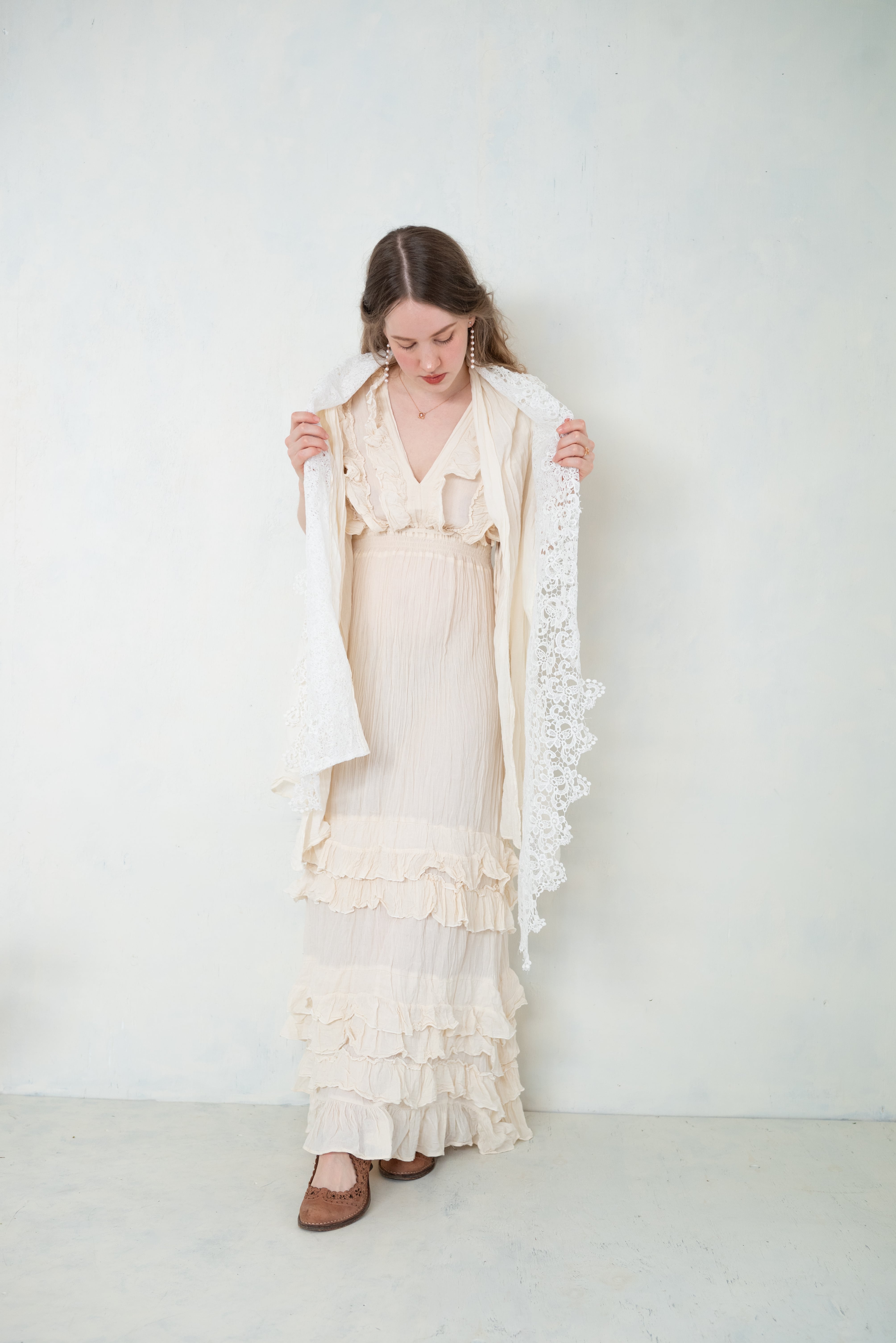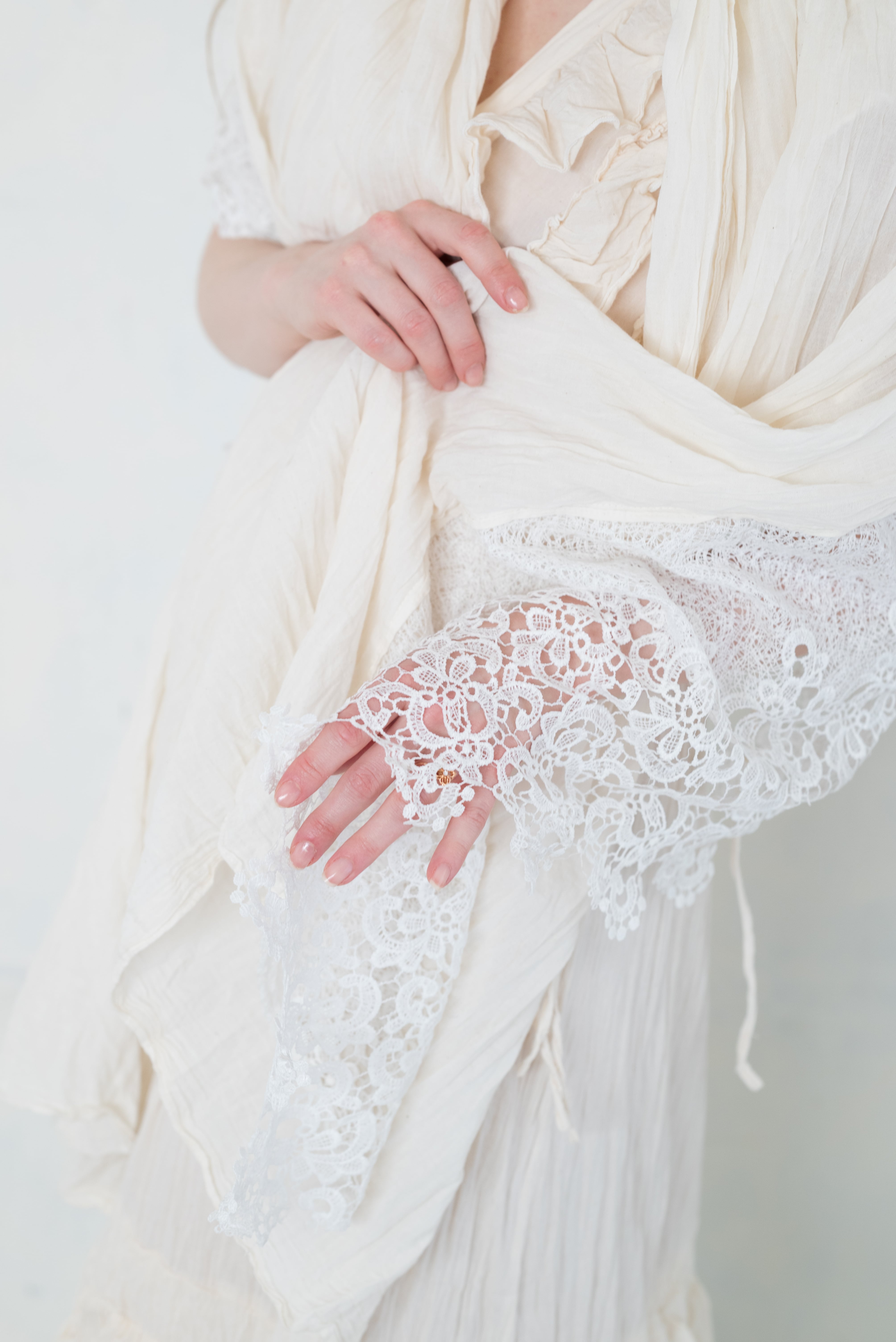 柔らかなオーガニックコットンの風合いと、手仕事ならではのぬくもりを感じられる特別な一着です。