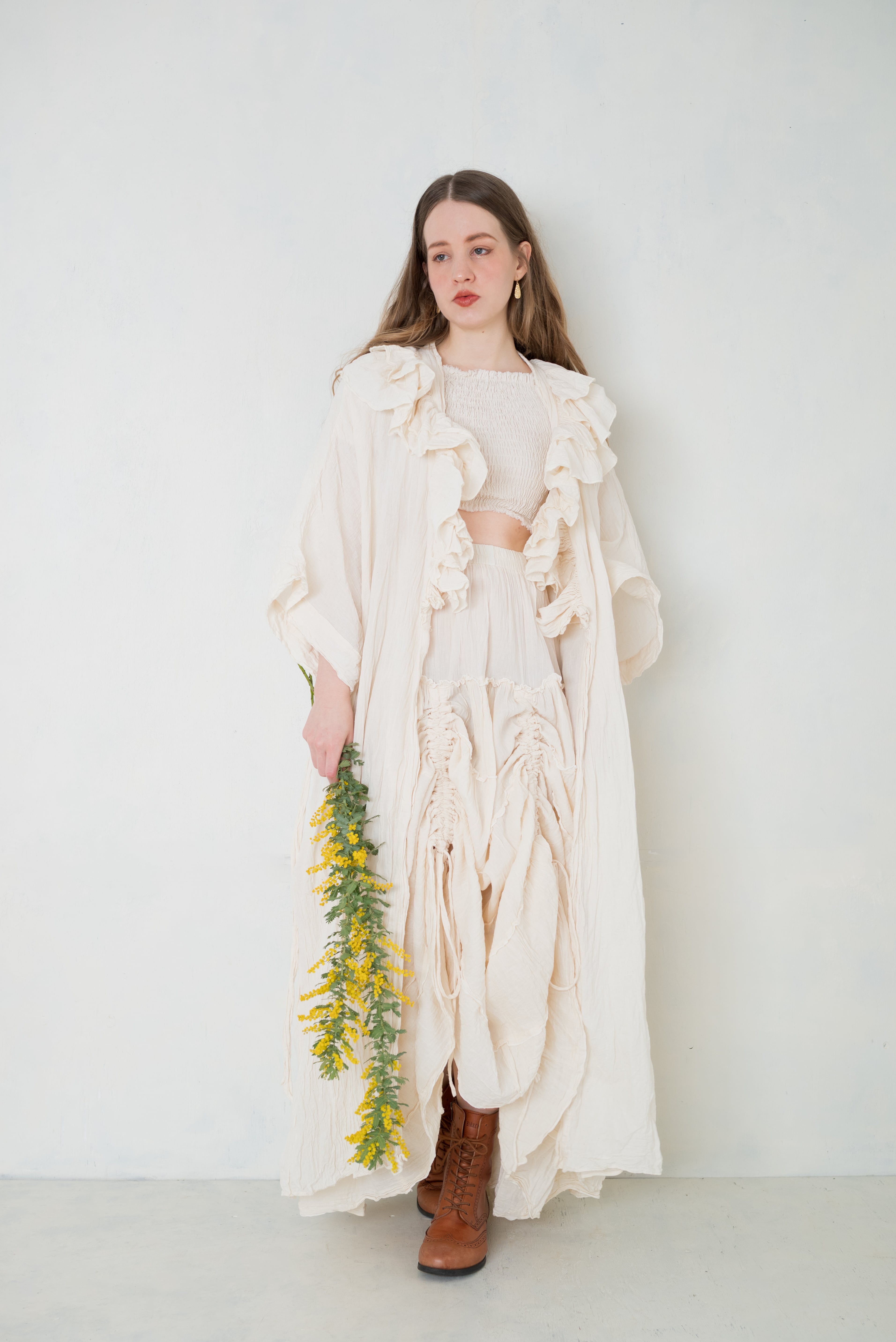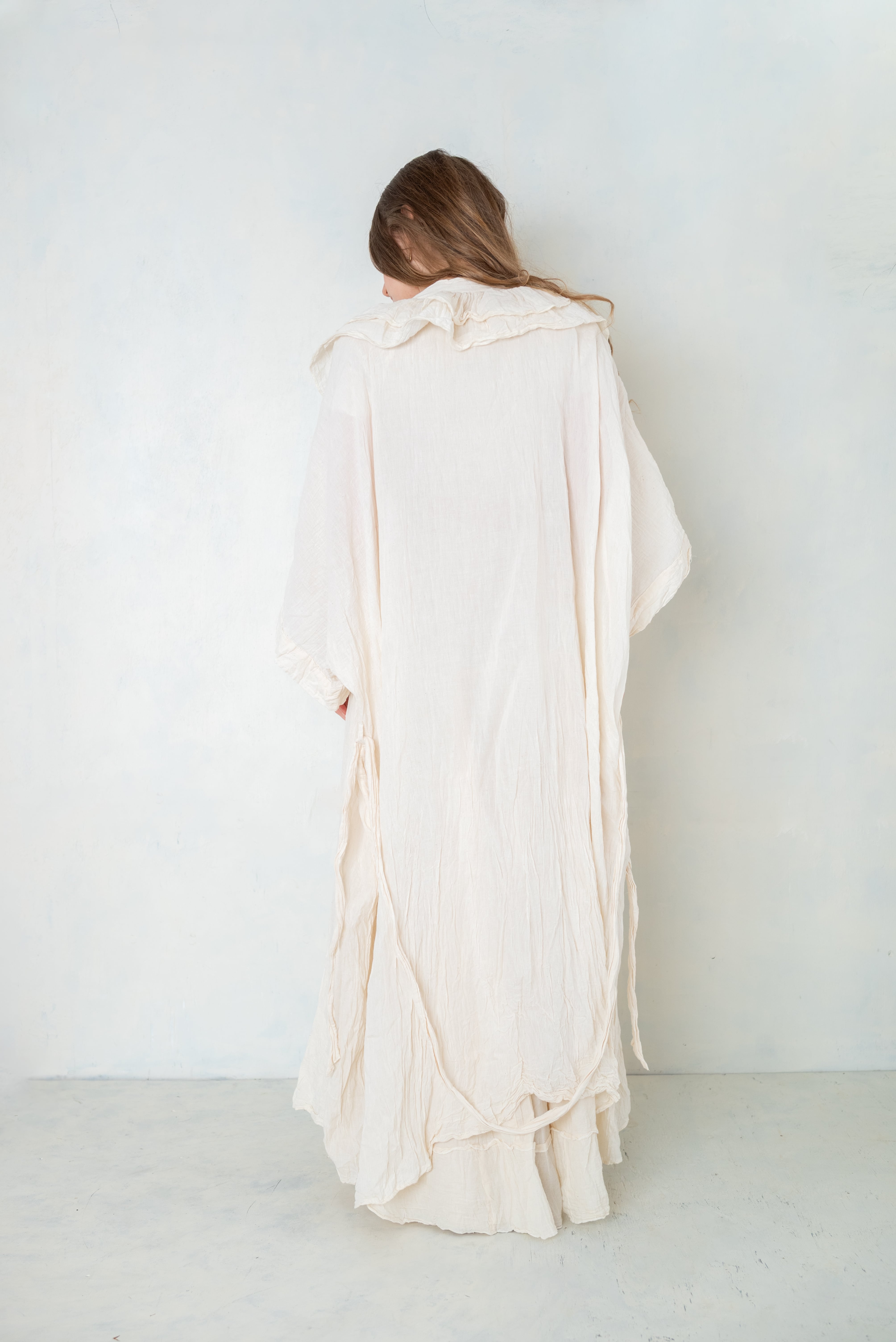 柔らかなオーガニックコットンの風合いと、手仕事ならではのぬくもりを感じられる特別な一着です。