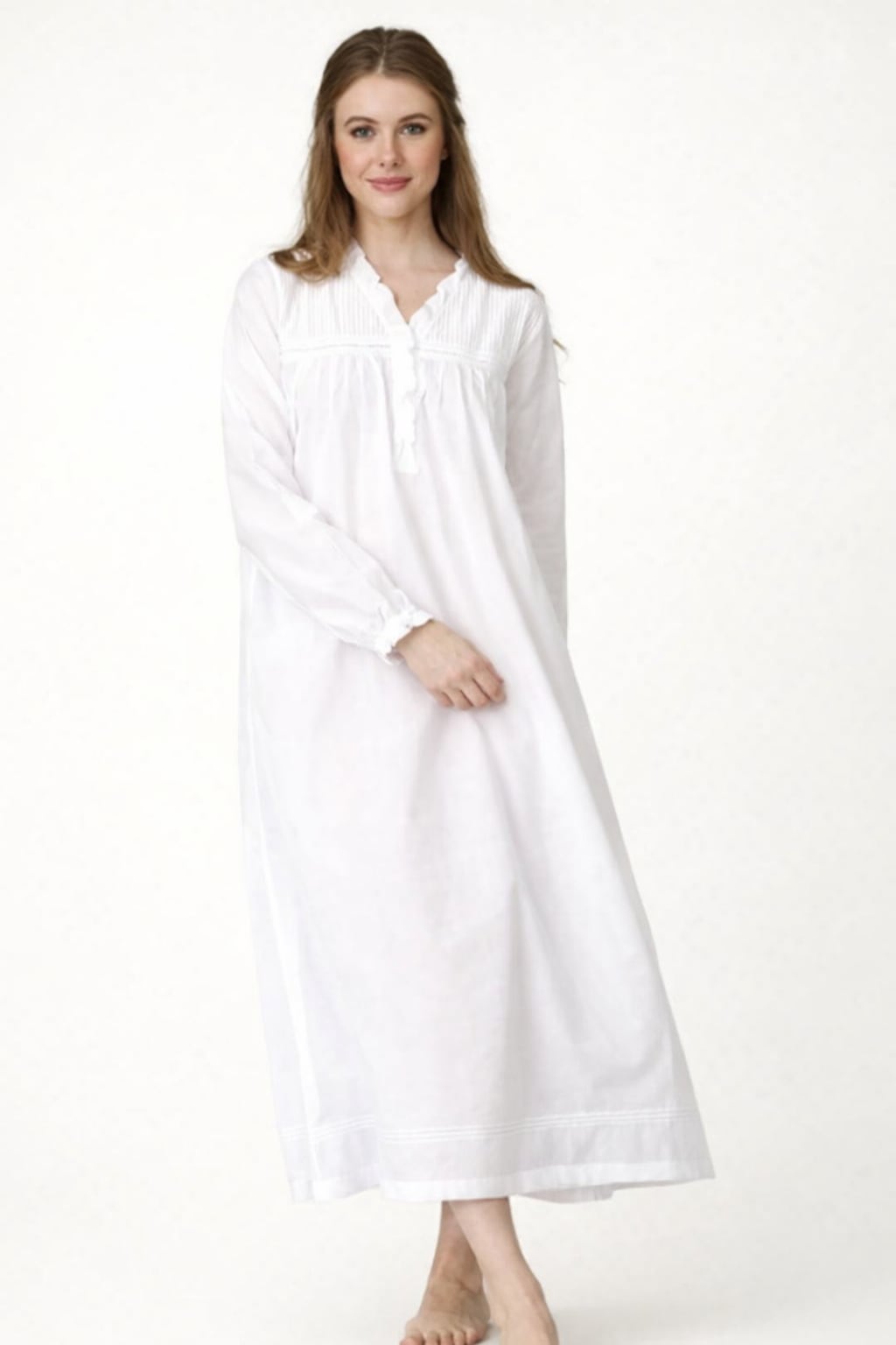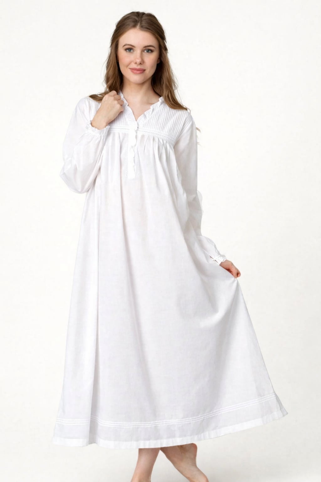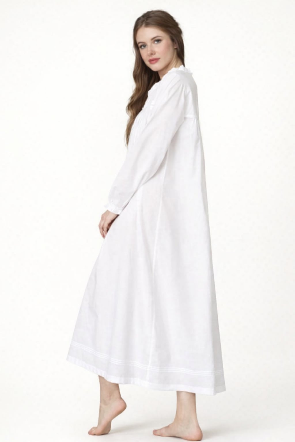 日常のなかに贅沢なひとときをもたらす、100%ピュアコットン仕立てのナイトガウンです。