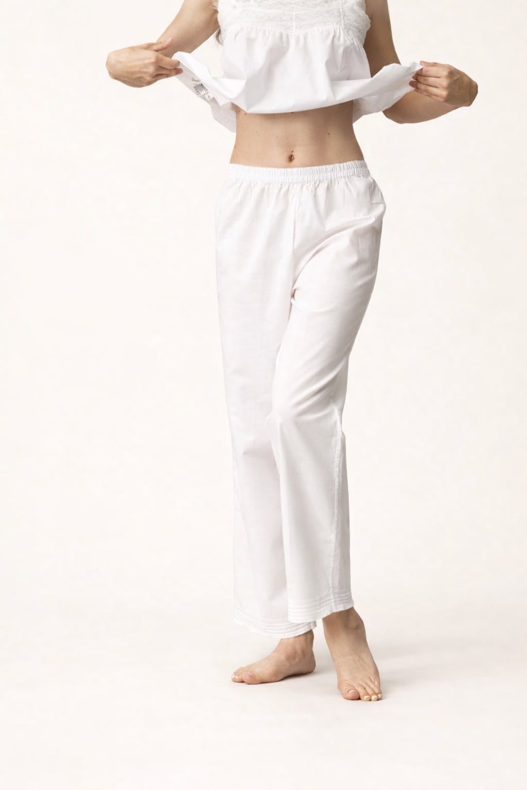 純綿の心地よさに包まれる、手仕事仕立てのパジャマパンツ。