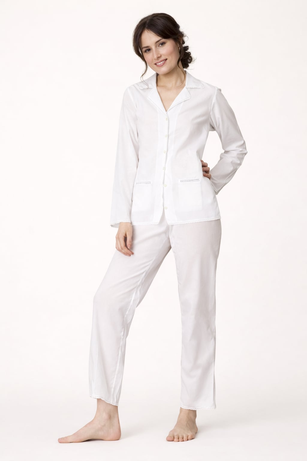 凛としたシャツカラーに添えられたレースのぬくもりが、おうち時間を少しだけ特別なものに変えてくれます。