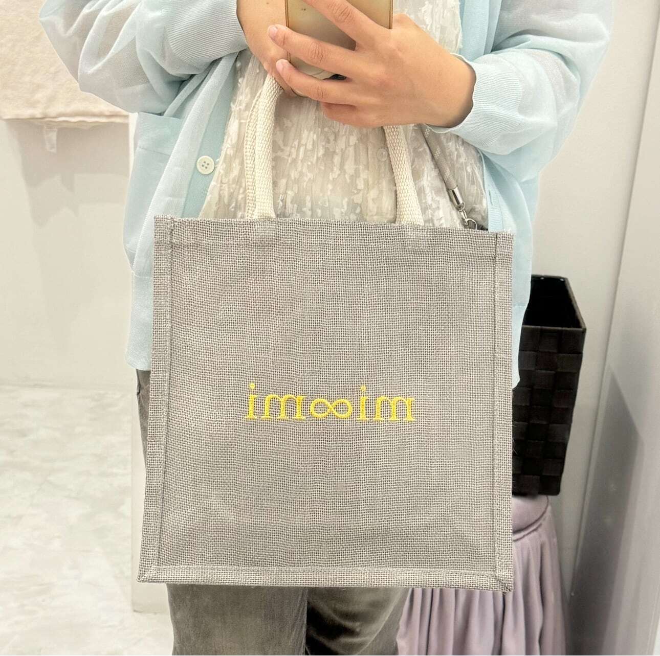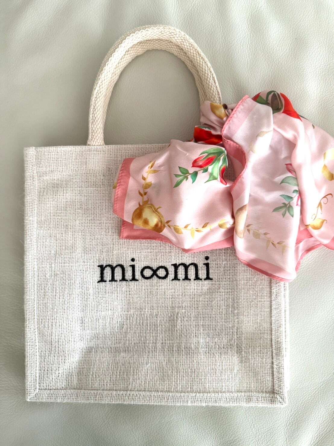 姉妹ブランドmi∞miのオリジナルジュートバッグです。