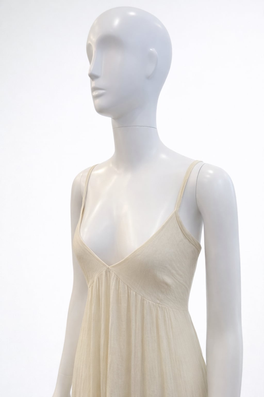 細めのストラップとやわらかなVラインが、
